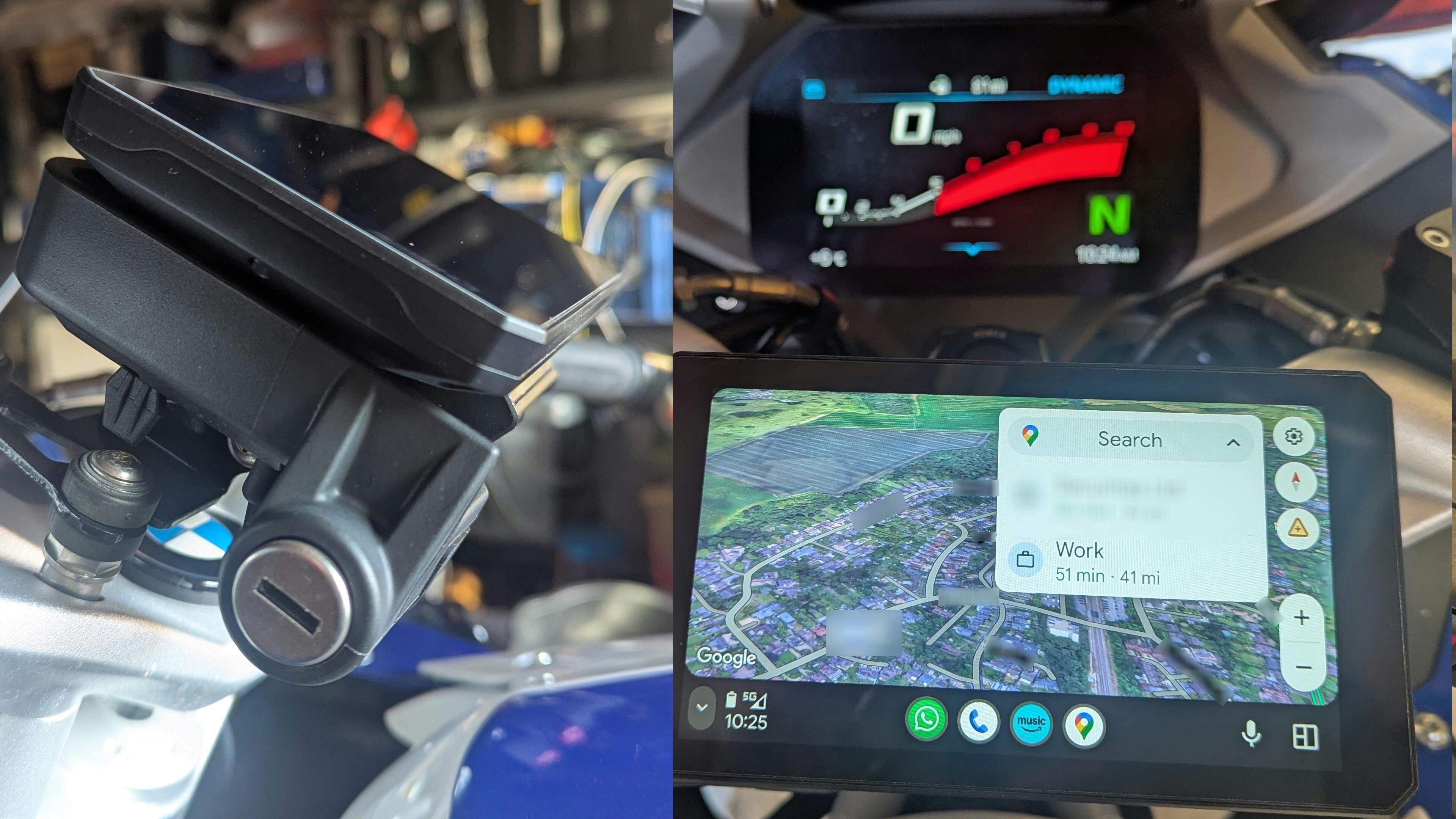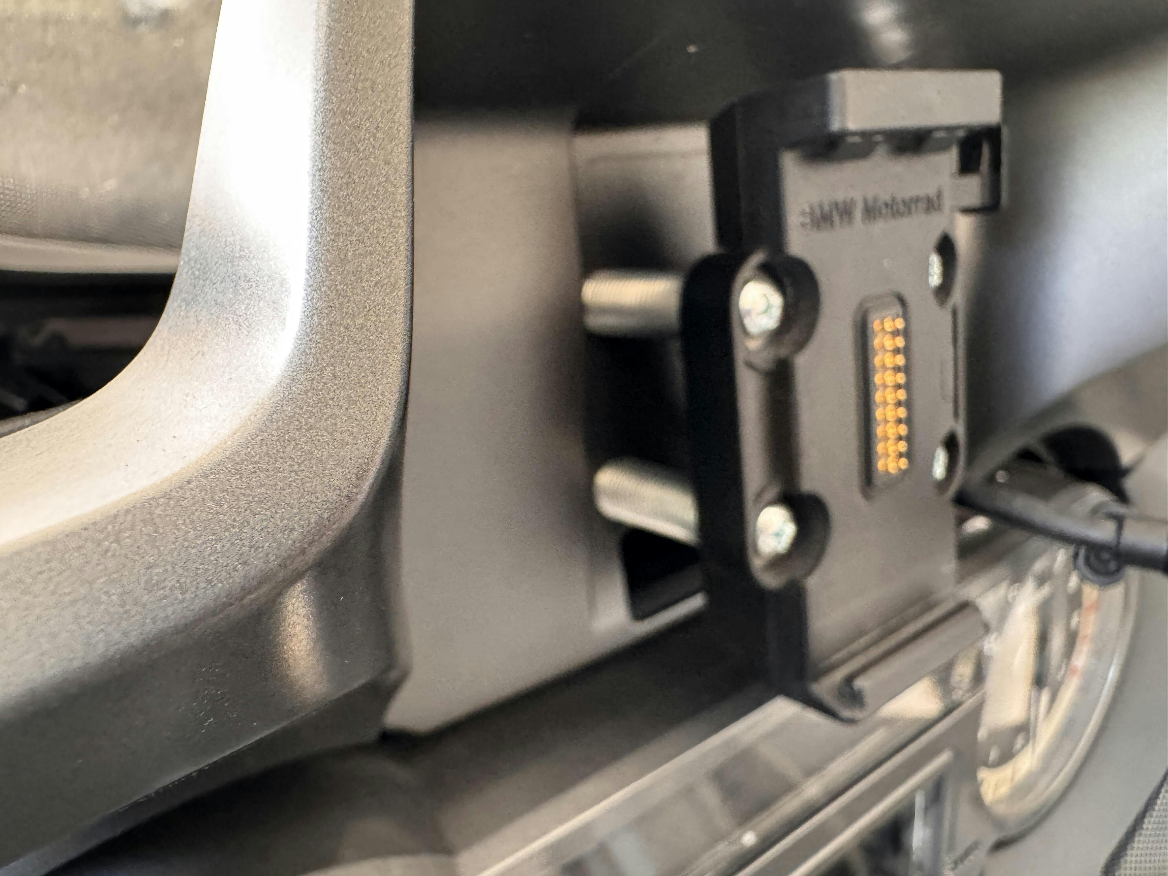 Wichtige Notiz:Aufgrund des größeren 6-Zoll-Displays des AIO-6 reicht der Kauf des BMW Schnellmontage-Moduls für die Installation an Ihrem R1200RT (2014–2017) oder 1250RT (2020) nicht aus. Es passt einfach nicht in den verfügbaren Raum.