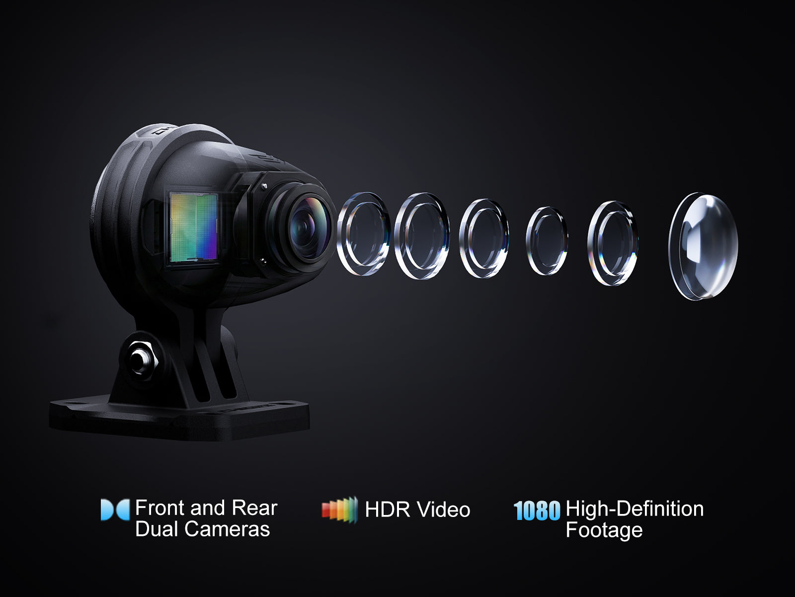 AIO-5 EVOは、前方と後方に搭載したデュアル1080pカメラで自動的に録画し、大切な瞬間をしっかりと記録します。HDR、150°の広角ビュー、電子式手ブレ補正、そしてスマートデイ&ナイトモードが連携することで、強烈な日差しや深い影、トンネル、荒れた道路でも映像を鮮明に保ちます。だから、必要なときに録画映像を見直したり、共有したり、安心してご活用いただけます。