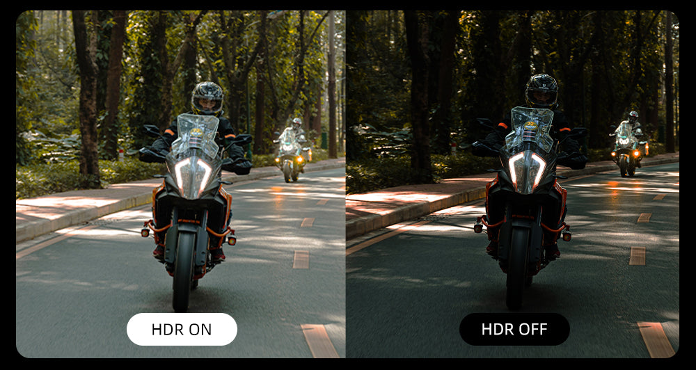 明るい日差し、深い影、トンネル ─ HDRはハイライトとシャドウをバランスよく調整し、より鮮明で自然な映像を実現します。