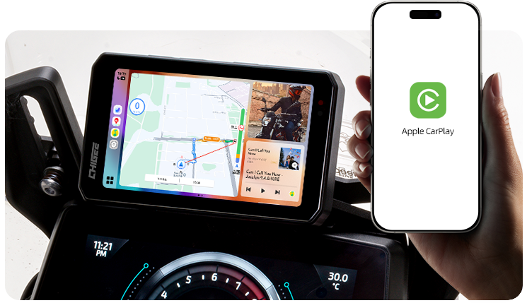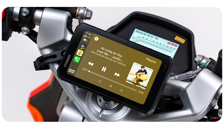 お気に入りのサウンドトラックをいつでも手元に。CHIGEE Displayを使えば、CarPlayやAndroid Autoを通して再生、停止、曲送り、音量調整が簡単にでき、スマートフォンを探す手間なく常に操作をコントロールできます。