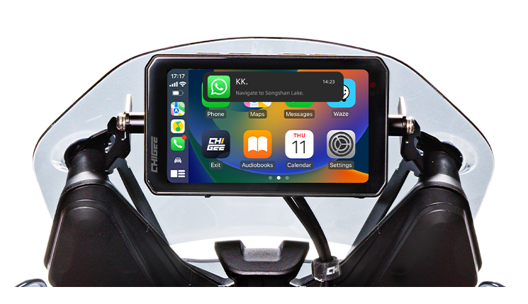 乗車中も常に最新情報をチェックできます。CHIGEEディスプレイ対応アプリからのメッセージや通話通知を受信し、重要な更新をひと目で確認できるので、必要な時にすぐ把握できます。