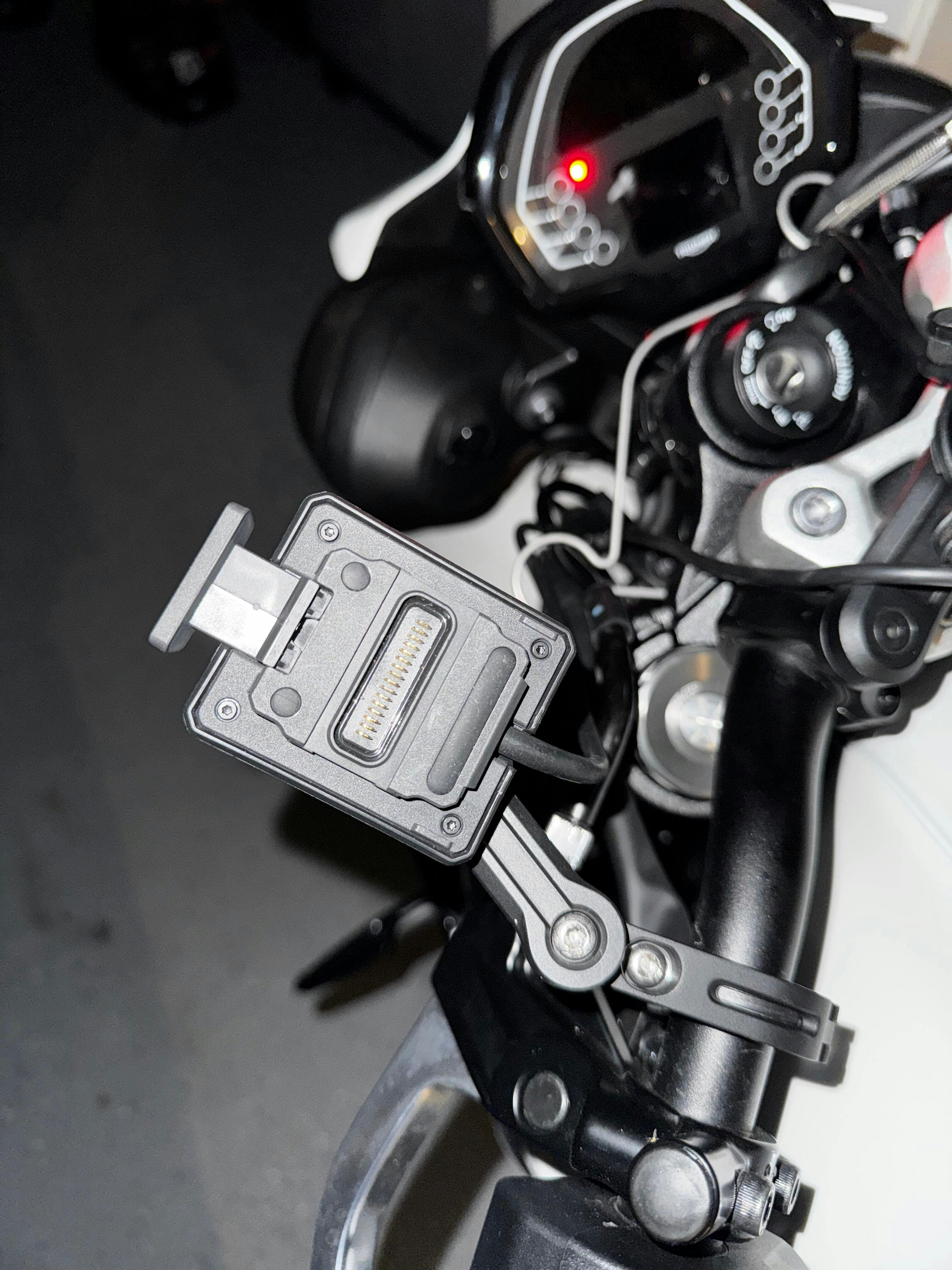 Besides, if I ride over 120km/h onroad, or if I ride over any bumps offroad, the device vibrates and I fear that the connecting arm may end up breaking. It should be anchored at two points to the handlebar and have a stronger arm. It didn't happen with my smartphone, which had a better mounting cradle on the same handlebar and motorcycle.
