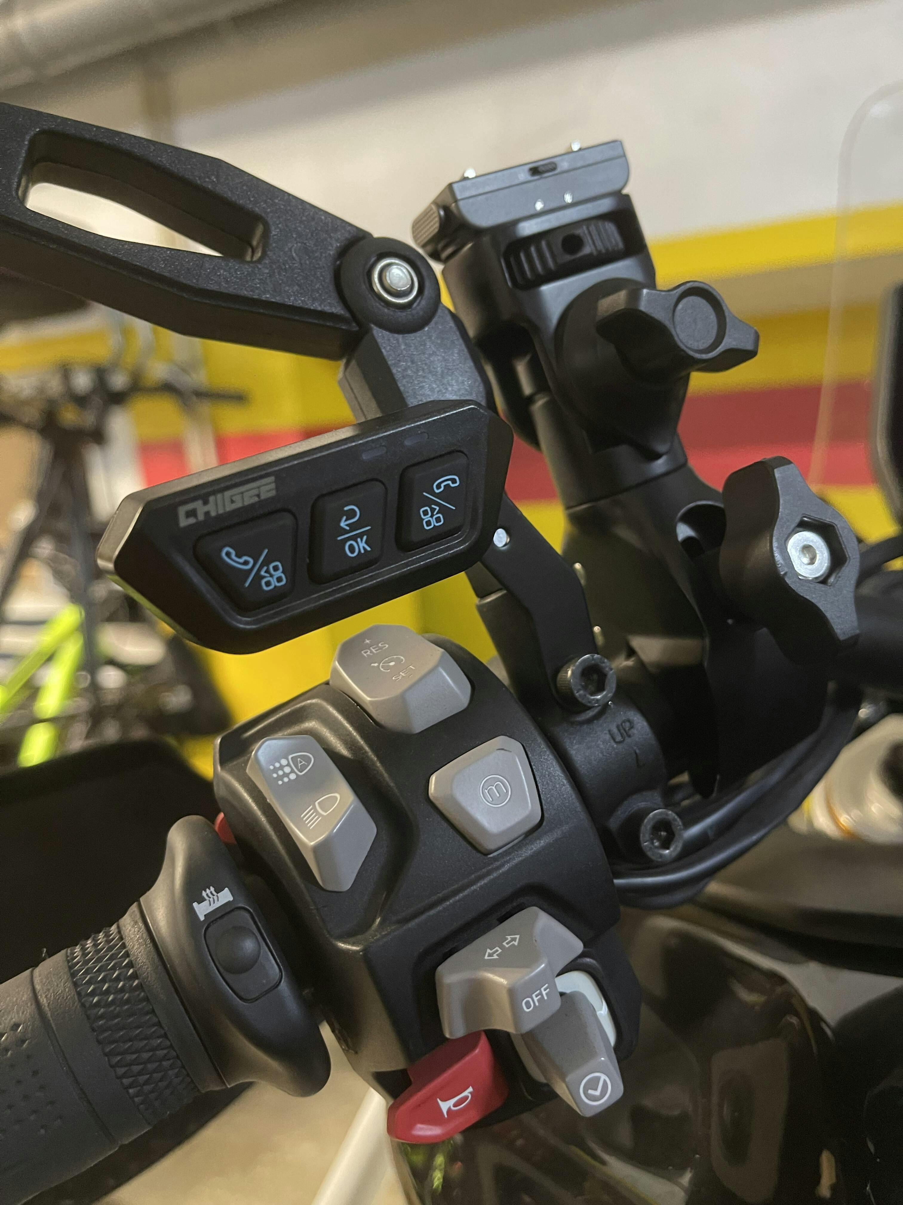 ด้วยรีโมทไร้สาย 2.4GHz ไม่จำเป็นต้องเดินสายไฟที่ซับซ้อน สามารถติดตั้งได้ง่าย มีปุ่มควบคุมแบบเฉพาะที่ใช้งานได้โดยไม่ต้องถอดถุงมือ พร้อมฟังก์ชั่นหลากหลายและทนทาน นอกจากนี้ยังมีการผสานการทำงานอย่างไร้รอยต่อกับหน้าจอ CHIGEE มอบประสบการณ์การควบคุมรีโมทที่ปลอดภัยและใช้งานง่ายสำหรับนักบิด摩托车装备术语和语气翻译以下文字,保留特定词汇的指定翻译(如CHIGEE->CHIGEE,-->-)。输出仅翻译文本,保持原始文本的字母大小写不变。使用2.4GHz无线遥控器,无需复杂的布线。安装简便,独特的按钮布局可实现戴手套操作,多功能且耐用。还具有与CHIGEE显示器无缝集成的特点,为骑行者提供安全且用户友好的遥控体验。